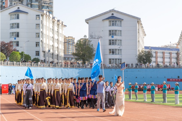 开幕式后,首先进行民族健身操表演。各学院部的民族健身操方阵身着各色服装,健步入场进行表演。他们动作整齐划一、协调一致,在活力四射的舞步中呈现异彩纷呈的民族文化特色和青春奋进力量,展示了民大学子的进取姿态和昂扬风貌,生动体现了少数民族传统体育文化精神和内涵。 根据运动会赛程,在接下来的三天,学校将进行田径类、集体类、球类等十五项比赛赛事,共1000余名运动员参加本次运动会各个项目的角逐。