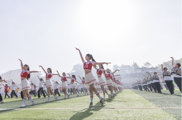 上午8时整,伴随着慷慨激昂的《运动员进行曲》,运动会入场式正式开始。英姿飒爽的校国旗护卫队率先从主席台前正步通过,全场肃立向国旗行注目礼。热情洋溢的彩旗队、朝气蓬勃的鲜花队、从容稳健的裁判员代表队紧随其后以昂扬向上的精神风貌通过主席台。随后,19个学院(部)的代表队迈着整齐的步伐依次入场,并带来精彩的驻停表演,赢得现场观众热烈的掌声和欢呼。