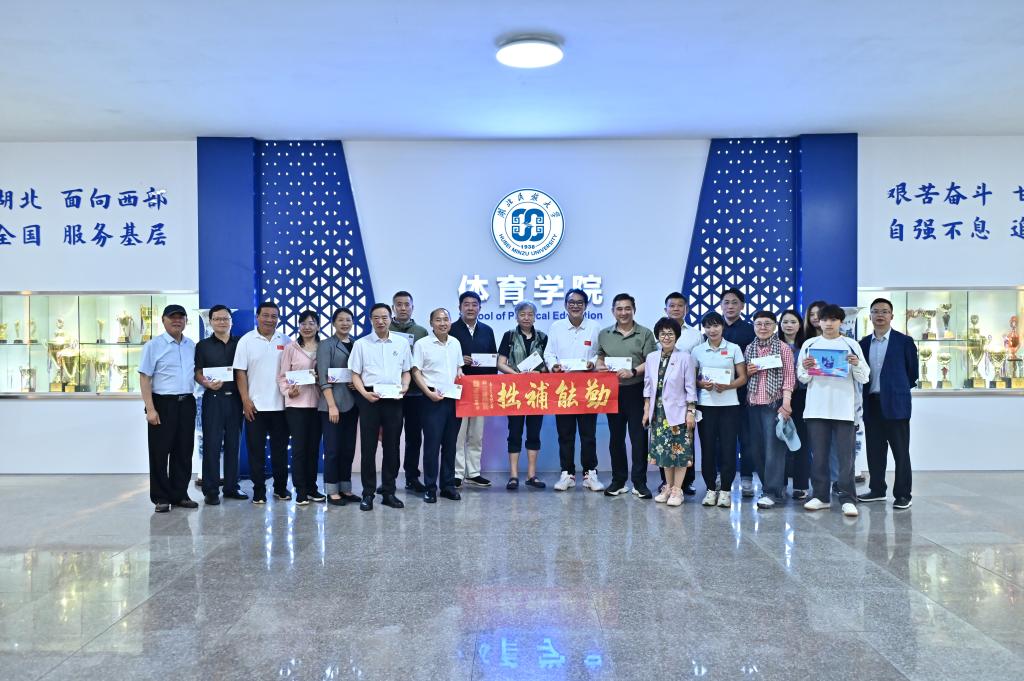 张景华此行主要看望了体育学院曾受资助的陈芬老师和大四学生曾璐,深入了解受资助学生目前的学生生活和工作情况,对两名学生表示问候。陈芬老师表示,在自己的学生时代,不管是物质还是精神方面,北京景华公益基金会都给了她极大的帮助。资助活动对贫困学生的生活和学业都有一定的改善,这种行为是值得推广的。自成立以来,基金会持续关注儿童和老人等困难群体,开展助学、敬老等公益项目,无偿捐助覆盖面达29个省市自治区,受益师生一百万余人。调研结束后,张景华一行在体育学院前合影留念。