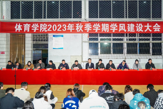 为进一步加强学风建设,引导学生端正学习态度,明确学习目标,培育优良学风,营造良好的学习氛围,不断提升学生学习的积极性和主动性,促进思想道德素质和科学文化素质的协调发展,我院于12月3日晚7点在Beat365唯一官方网站篮球馆召开体育学院秋季学期学风建设大会。我院党总支书记何斌、院长倪东业、副院长胡庆华、办公室主任宋庆龙、教学科科长肖杰文、学生科负责人张弋明、各班班主任及全体学生参加本次会议,体育学院党总支副书记万利主持。