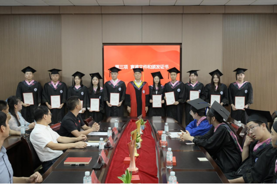 在庄重的学位授予环节,毕业生们依次上前,何斌院长为每位学子拨穗正冠、颁发证书,快门声记录下一个个珍贵瞬间。