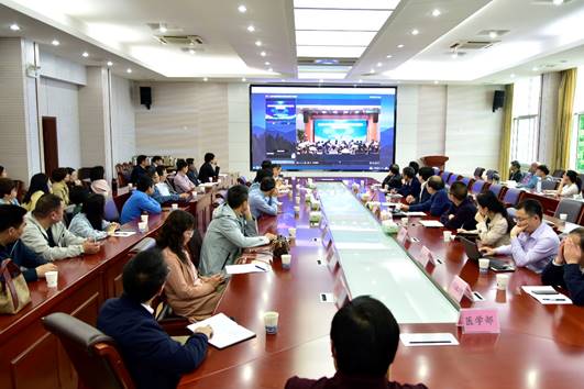 Beat365常委副书记、副校长汪兴平,科技处、保卫处负责人,实验室建设与管理处、武陵山中药材检验中心及省级重点实验室全体管理人员,各二级学院分管实验室副院长、实验室(中心)主任、部分科研教师共计80余人在学校行政楼3号会议室集中参加了本次视频会议。