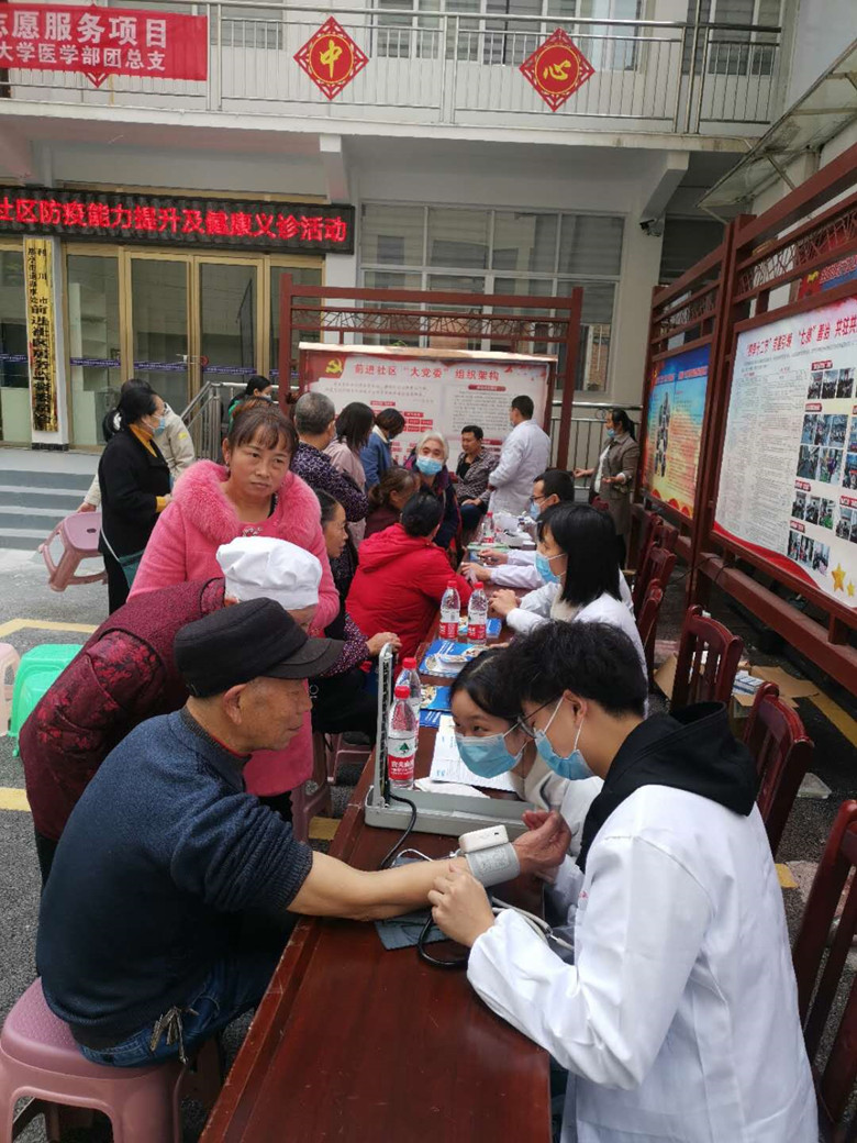 10月24-25日,农工党Beat365唯一官方网站委员会积极参与共青团省委“基层网格化健康服务助力乡村防疫应对能力提升”公益项目,与恩施州助学扶贫促进会组织医疗专家团队前往利川市桃花社区、普庵社区和前进社区,开展送医送药义诊及健康志愿服务进社区活动。该活动得到附属民大医院、州优抚医院等单位的积极响应和大力支持,共青团医学部团总支部分青年学生作为志愿者参加活动。