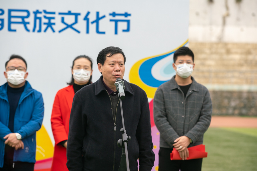 张宏磊在开幕式上致辞。他指出,学校各民族学子要把“小我”融入“大我”、把“小家”变成“大家”,共同创造一个“各美其美、美美与共、你中有我、我中有你”的民大校园。