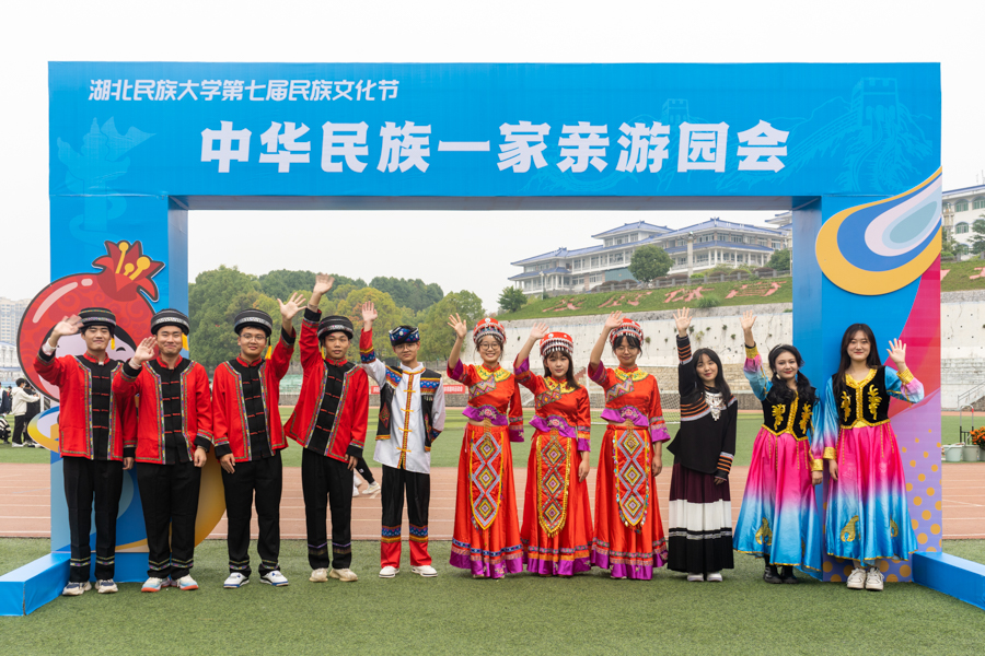 开幕式当天,中华民族一家亲游园会活动在民族体育场举行。来自各个学院(部)的少数民族学生身着各族民族服装,对各自民族的概况、文化、饮食、服饰等方面进行讲解。各二级学院通过开展趣味小游戏、展示图文结合式展板、表演少数民族舞蹈等多种方式向学生传播少数民族文化,参与游园会的学生可以通过完成游戏项目,赢得精美礼物。其中,教师教育学院的东乡族文化艺术展示吸引了参加活动的领导及众多师生的关注,此外,民族学与社会学学院设置“三角斗”“对斗”等比赛,文学与传媒学院开展“别样祝福”“小小挑战”等活动,林学园艺学院的畲族站点设置民族知识问答和“采柿子”等活动吸引了大量同学踊跃参加,各个学院开展的各具特色、欢乐有趣的活动使青年学子对多元一体的少数民族文化有更全面的认识,也进一步增强了各民族间交往交流交融的和谐氛围。