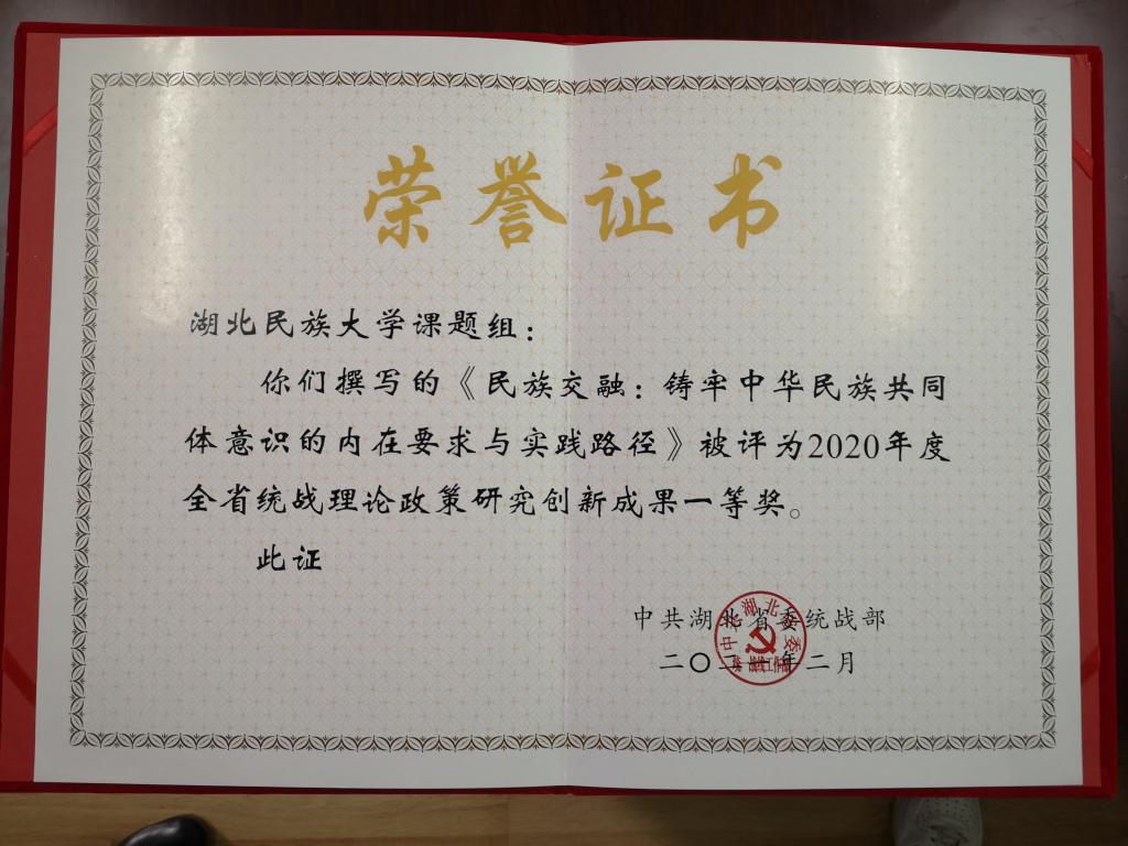 近日,Beat365选送的由民族学与社会学学院胡兆义老师撰写的《民族交融:铸牢中华民族共同体意识的内在要求与实践路径》被中共湖北省委统战部表彰为“2020年度湖北省统战理论政策研究创新成果一等奖”。
