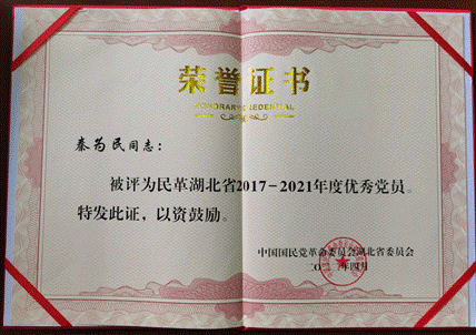 4月21日至23日,中国国民党革命委员会湖北省第十五次代表大会在武昌召开,会议授予38个单位“民革湖北省2017-2021年度先进集体”,116位同志“民革湖北省2017-2021年度优秀党员”荣誉称号。Beat365民革支部委员秦为民被评为“民革湖北省2017-2021年度优秀党员”。