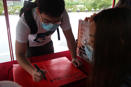 “文传学子,阔别已久,欢迎回家!”6月21日,文瀚楼前,一条红色横幅在雨中显得格外鲜艳。一个个2020届毕业生通过了严密的疫情防控检测,回到了久违的校园,我院迎来了今年的首批返校毕业生。