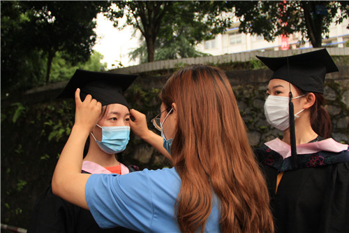 半年未见的老师、同学,再见已是毕业季,文瀚楼前,大家为对方擦拭离别的泪水,为彼此轻抚头上的帽穗。一张照片,将定格这场特殊又难忘的毕业礼。