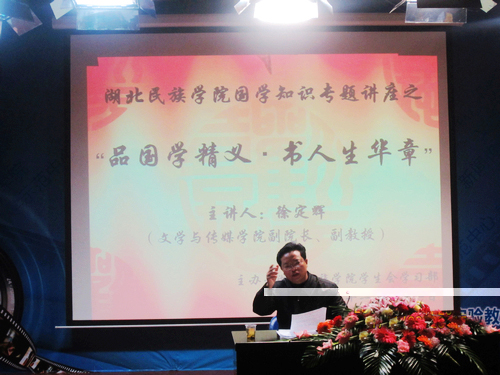 本网讯(记者 刘婉 杨玲玲 邓杰/文 周璐/图)“品国学精义,书人生华章”。11月21日晚,Beat365国学知识专题讲座在我院附楼演播厅举行,我院副院长徐定辉担任主讲,来自各二级学院的学生干部及百名余学生聆听了本次讲座。