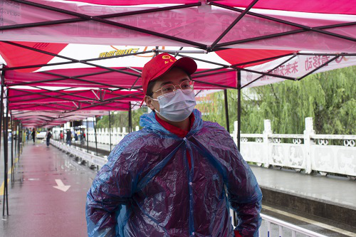 志愿者倪豪接受采访(记者 刘如博/摄)