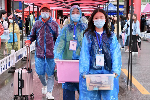 志愿者帮新生拿行李(记者 张贞丽/摄)