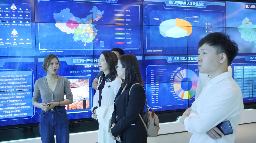 21日上午10时,考察团一行参观了全国重点双创基地——猪八戒网,了解其创业发展历程,并就猪八戒网对大学生创业帮扶情况进行了相关咨询。