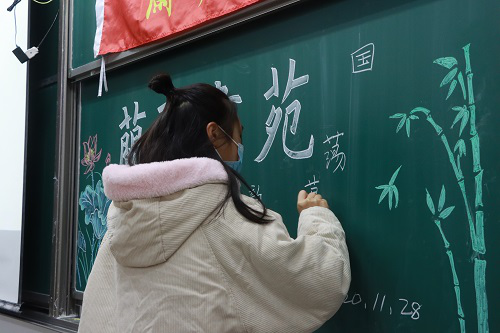 此次特色活动设有“题字作画”“趣味游戏”和“时光邮寄”三个环节。其中,“题字作画”由学生独自完成,参与者可自行选择粉笔或者签字笔进行作画,在一笔一划的勾勒中体验题字作画的乐趣,飘逸的书体和精美的扇子画赢得阵阵掌声。“趣味游戏”环节,“书体蹲蹲乐”“泡泡糖游戏”考验学生的反应能力、团队协作能力,参与者全神贯注、成员之间积极配合,现场笑声不断,气氛活跃。“时光邮寄”环节,参与者在纸条上写下对未来的期许,该社将在2021年举办“兰亭杯”时归还字条,与学生共同成长。