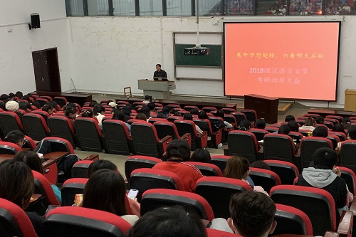汉语言文学分会场,陈云豪担任主持人。会议伊始,徐定辉从考研的原因及方法两方面进行阐述,并结合相关案例鼓励学生积极考研,在本专业能够有更深的造诣。陈云豪介绍考研基本情况。他围绕“要不要考研”“如何选择院校专业”“如何准备”及“自身优势”四个方面展开叙述,他认为是否考研要充分结合自身实际,切忌盲目跟风,要重视院校及专业的选择。此外,他建议学生制定计划,循序渐进展开复习,可采用模糊记忆、思维导图等方法加强记忆与理解,同时要保持持之以恒的耐力和聚精会神的状态,提高复习效率。