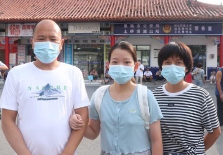 李诗琦同学与父母的合照(记者 唐程/摄)