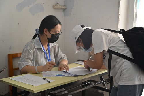 新生填写寝室入住表(记者 陈璇/摄)