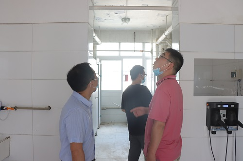 老师检查浴室问题(记者 熊新/摄)