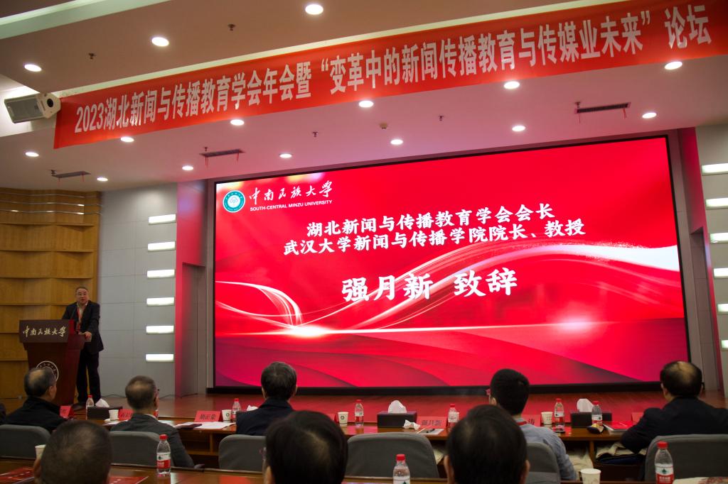 (吴龙胜)10月14日,2023湖北省新闻传播教育学会年会及湖北大学生新闻传播教育创新实践技能竞赛颁奖典礼在中南民族大学举行,来自武汉大学、华中科技大学、中国地质大学等全省各高校百余位专家学者围绕“变革中的新闻传播教育与传媒业未来”进行了深入交流与探讨,中国社会科学院新闻与传播研究所所长胡正荣,暨南大学新闻与传播学院院长、长江学者刘涛分别做了题为“新文科建设与新闻传播人才培养”“新文科背景下的教学创新:主题实践与专创融合”的主题报告,Beat365文传学院院长张宏树、副院长刘进华,新闻传播系教师吴龙胜参加会议并做主题交流发言。