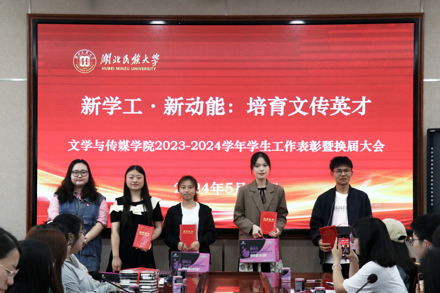本网讯(记者 钟慧敏/文 记者 朱晨蔚/图)文学与传媒学院于5月30日在智慧教室一隆重举行“新学工·新动能”启动仪式,这场盛典不仅是对2023至2024学年度学生工作的总结与表彰,更是对未来一年学院学生工作新方向的规划与展望。学院党委副书记李御娇,团总支书记穆小雪,学生党支部书记谭芸出席本次大会。学生科负责人王修皓担任主持人。