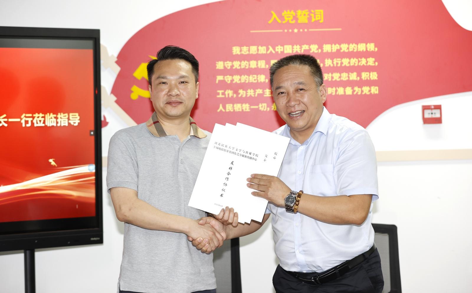 江佳慧副院长对汉语言文学专业的发展情况进行了简要介绍,张宏树院长向神湾镇教体事务中心对学院学生实习工作的关心和支持表示衷心的感谢,并介绍了学院基本情况及未来发展规划。张宏树院长表示,学院高度重视实践教学和实践平台建设工作,希望通过此次实地基地的建立与神湾教体事务中心建立长期稳定合作,实现校、地、学生三方共赢,为国家教育事业培养更多优秀人才。