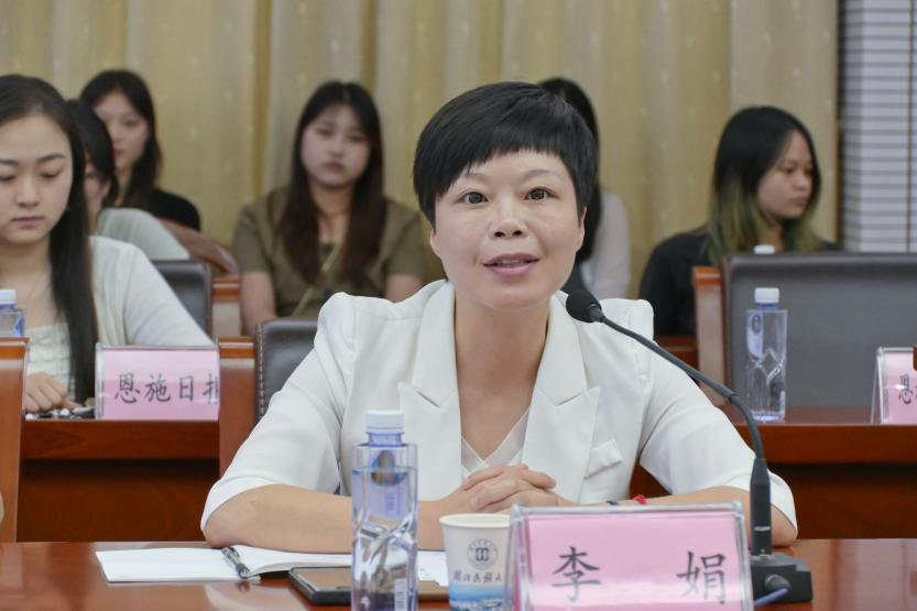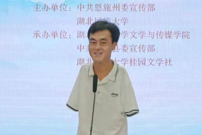 李娟首先代表州委宣传部对活动举办方及工作人员致以诚挚谢意,其次分享广播剧《没有翅膀的飞翔》作为恩施州本土原创文艺作品取得的成就,期望学生以剧中人物及陈兹方先生为榜样,在陈兹方先进事迹的鼓舞下乐观向上、自立自强、拼搏奋斗。最后,李娟提出两点希望:希望全州文艺工作者能够努力创作出更有高度、更有深度、更有美誉度的文艺精品,为文化强州建设作出新的更大贡献。希望全州高校、学校不断创新形式,搭建更多平台,让更多优秀文艺作品成为学生思政教育和健康成长的灯塔,培养造就更多时代新人,共同为推进“两山”实践创新示范区建设增光添彩。