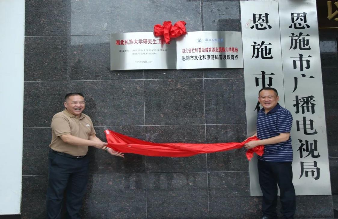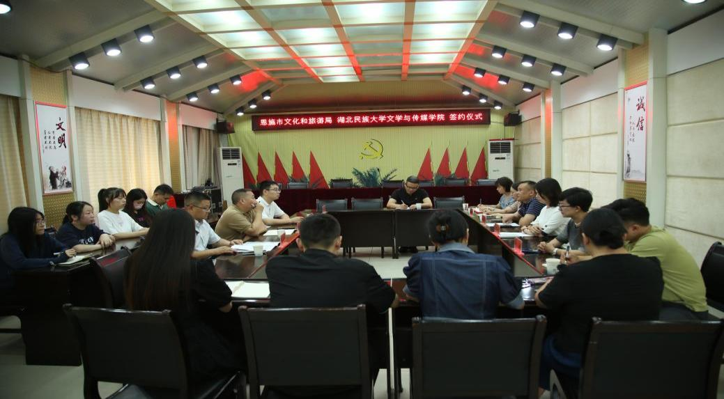 (本网讯 通讯员张箬雨)6月24日,Beat365唯一官方网站文学与传媒学院与恩施市文化和旅游局就校地协同育人,共谋文旅发展事宜进行了磋商。双方举行了友好合作签约仪式,并为“Beat365唯一官方网站研究生工作站”“湖北省科普及教育Beat365唯一官方网站基地——恩施市文化和旅游局普及教育点”揭牌。