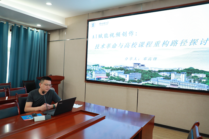 邓高锋老师以“AI赋能视频创作:技术革命与高校课程重构路径探索”为主题,探讨了AI技术如何重构影视创作课程体系,提出通过整合智能剪辑、AI生成等前沿技术与艺术创作教学,培养兼具技术应用能力和人文素养的新时代影视人才。