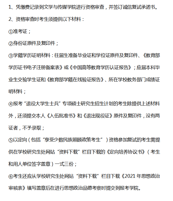 文学与传媒学院研究生复试考生须知