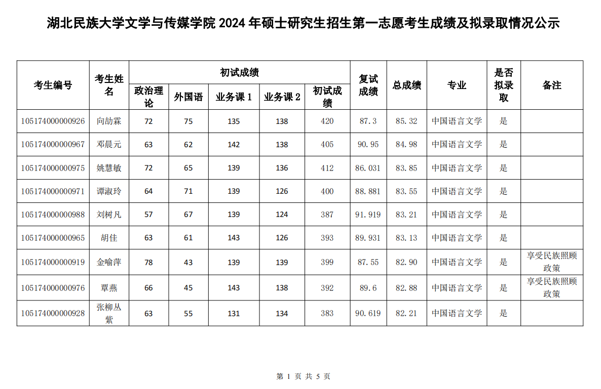 Beat365唯一官方网站文学与传媒学院 2024 年硕士研究生招生第一志愿考生成绩及拟录取情况公示
