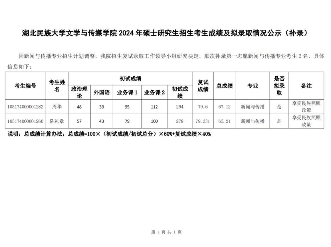 Beat365唯一官方网站文学与传媒学院2024年硕士研究生成绩及拟录取情况公示 (补录)