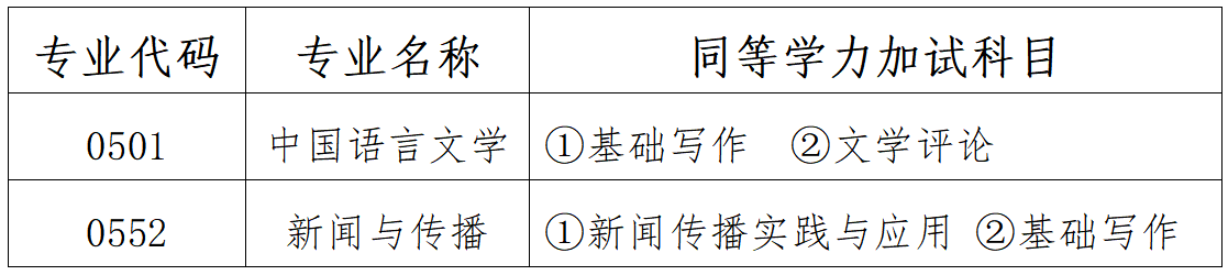 表3 同等学力加试科目