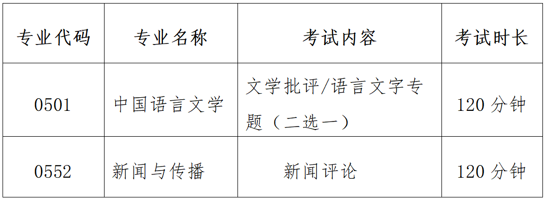 专业课笔试均为闭卷考试,满分为100分。各专业课笔试内容见表2。