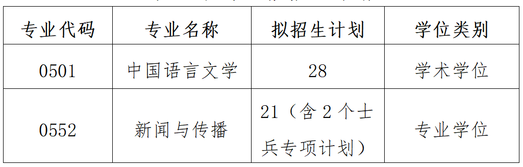 文学与传媒学院各专业拟招生计划见表1。
