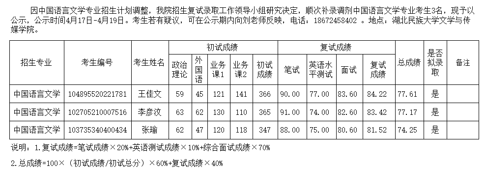Beat365唯一官方网站文学与传媒学院2025年硕士研究生调剂复试成绩及拟录取情况公示(补录)