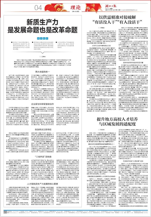 2025年2月3日,《湖北日报》理论版发表我院张宏树教授文章:《