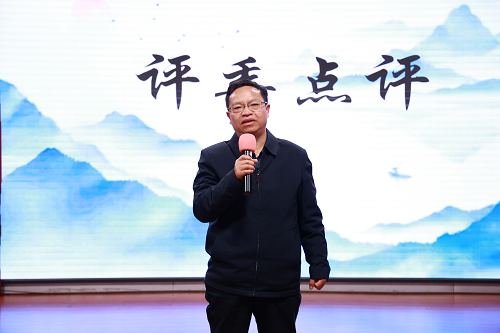 徐定辉点评。他首先对选手的精彩表现和出题者的精心准备表示赞扬,他提到“文之精者为诗”,认为诗词大会不只是一个简单的比赛,更能提升学生对美的感受,锻炼学生在古典诗词方面的学习能力,陶冶学生的气质品性。