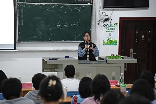 吴德馨作经验分享。她首先提出“选择大于努力”的观点,认为确定方向比开始努力更重要。她建议学生筑牢专业课基础,勤于背书,多多积累。其次,她还提到考研须打破信息差、保证信息畅通,鼓励学生保持良好心态,勇于尝试。