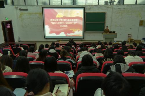 本网讯(记者 陈淼浠/文 记者 杨清密 李思涵/图)11月25日,文学与传媒学院和研究生处在修远楼5B404教室举行第四期青年马克思主义者培养工程培训班开课典礼。学校研究生处老师向鑫受邀参加开课典礼并作指导讲话。我院团总支书记穆小雪担任主持人。