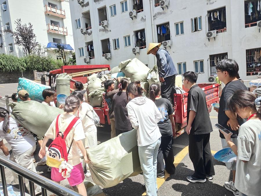 本网讯(记者 宋正悦/文 通讯员 穆小雪 姜春玲/图)6 月 15 日,为积极响应部分学生寝室调整需求,助力搬迁工作顺利推进,我院精心组织了一场充满温情与力量的学生搬迁志愿服务活动。55 名志愿者齐心协力,在达人三栋至达人五栋之间搭建起一条充满爱意的“搬运流水线”,以实际行动诠释责任与担当,协助同学们圆满完成寝室搬迁任务。
