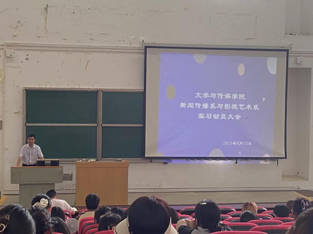 2023-06-16本网讯(通讯员 周琳)为了扎实推进新闻传播系与影视艺术系2024届毕业生实习工作,引导学生明确认识实习的目的与意义。6月13日下午,我院在5A207召开了新闻传播系与影视艺术系2024届毕业生实习动员大会。党委书记刘木球、副院长刘进华、副院长江佳慧、教学科负责人张慧及新闻传播系与影视艺术系2024...