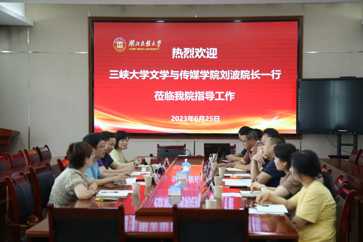 2023-06-27本网讯(记者 周琳)6月25日下午,三峡大学文学与传媒学院院长刘波、副院长朱华阳、广播电视学专业教研室主任杜晓红、教师李雪梅一行莅临我院。学校党委宣传部常务副部长罗翔宇、我院院长张宏树、副院长刘进华、副院长江佳慧、学科建设科科长姚爱华、新闻传播系副主任谭苏、新闻传播系副主任吴龙胜...