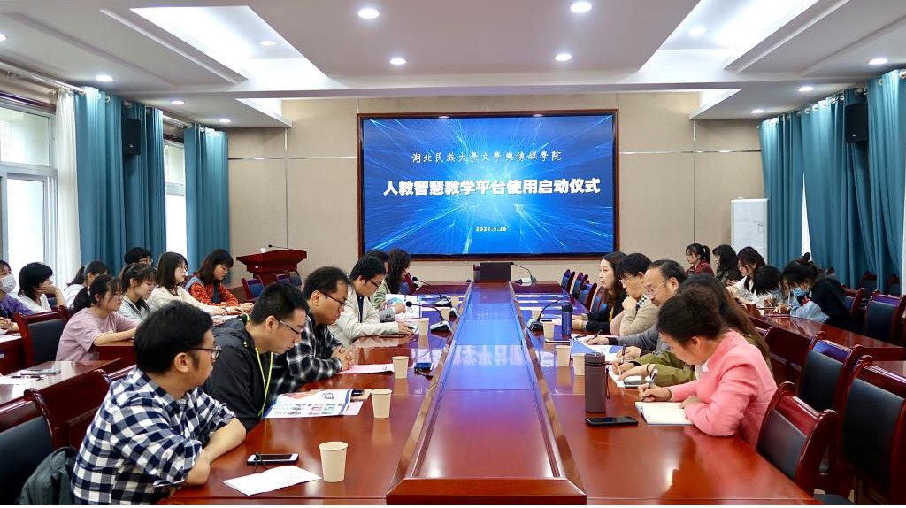 本网讯(记者 邢艺露)5月26日上午,人教智慧教学平台使用签约暨启动仪式在我院举行。文学与传媒学院院长罗翔宇、恩施州恒智教育科技公司总经理向宇、文学与传媒学院副院长何荣誉、校语委常务副主任郑艺、中文系教师代表及汉语言文学专业学生代表共计60余人参加仪式。人教智慧教学平台使用签约暨启...