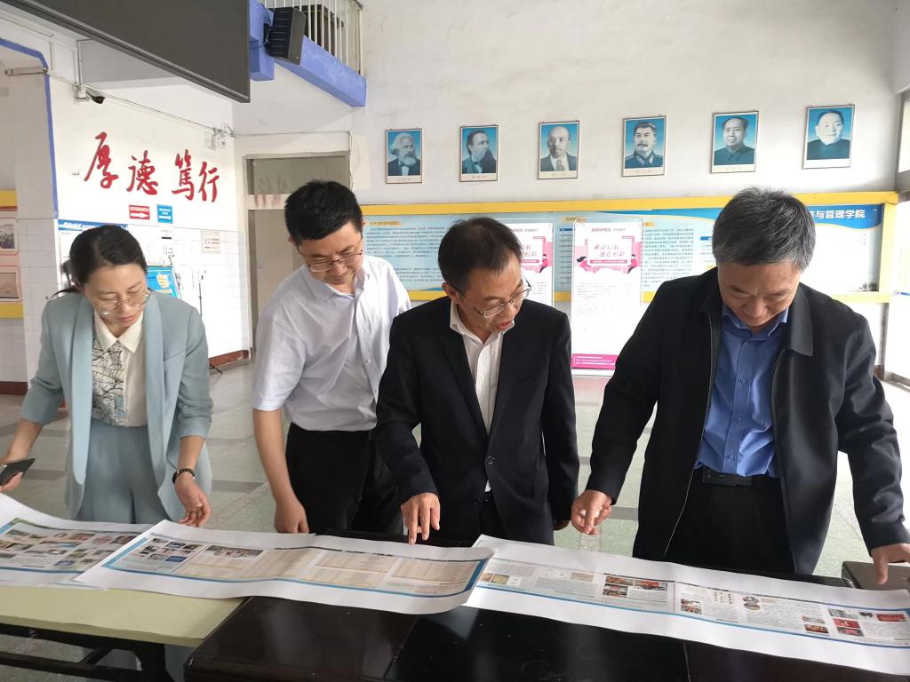 2022-05-22(通讯员 张慧)5月17日下午,校长顿祖义再次来到文学与传媒学院检查汉语言文学专业的师范认证工作准备情况。文传院党委书记刘木球、院长杨光宗和院党委副书记李御娇陪同。 顿祖义现场听取了杨光宗就文传院在迎评材料、环境氛围、宣传展示、人员组织、条件保障等方面准备情况...
