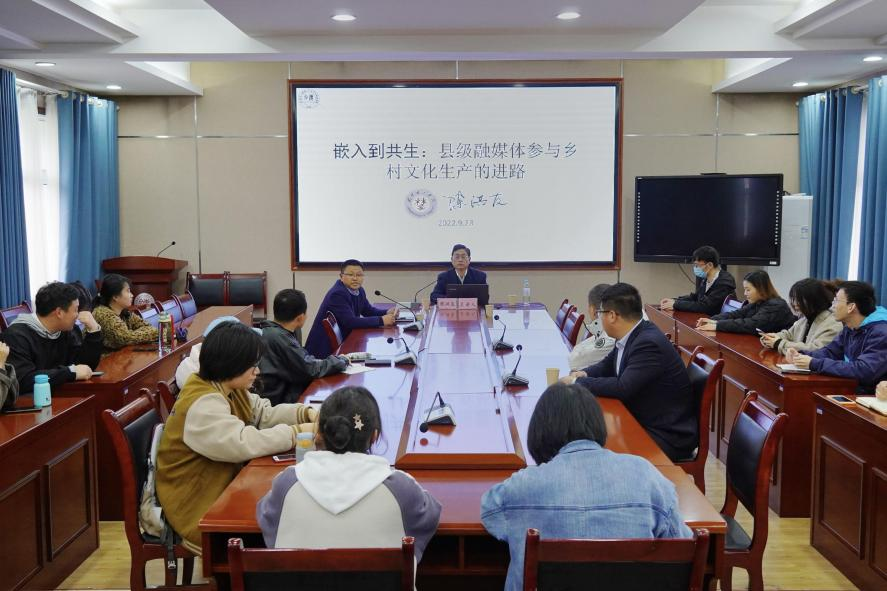 2023-03-27本网讯(记者 袁益涛 吕梦蝶) 3月10日下午,荆楚理工学院陈洪友教授受邀来访我院,为全院师生进行学术讲座。本次讲座由我院副院长刘进华主持。陈洪友教授以“嵌入到共生:县级融媒体参与乡村文化生产的进路”为题,围绕“县级融媒体参与乡村文化生产的困境”“建立县级融媒体参与乡村文化生产的关...