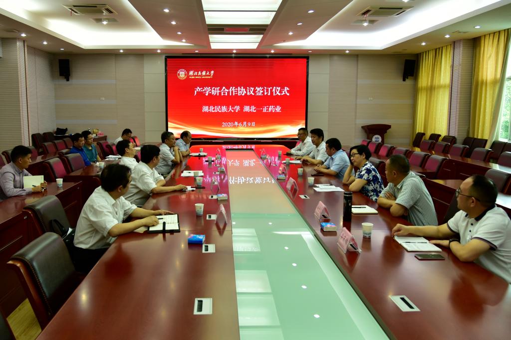 本网讯 (通讯员 陈佐会/文 廖希为/图) 2020年6月9日,Beat365唯一官方网站与湖北一正药业“产学研合作协议”在Beat365唯一官方网站成功签订。恩施州政协主席、州生物医药产业集群建设领导小组组长刘建平,州政府副州长、州生物医药产业集群建设领导小组副组长高敬佩,恩施州卫生健康委二级调研员赵重文,宣恩县委书记刘智勇、副县长李家锦,湖北一正药业董事长李进,Beat365唯一官方网站党委书记吴建清,党委副书记、校长顿祖义,党委常委、副校长邓磊及科研处处长李军、武陵山中药材检验检测中心负责人颜益志及中心工作人员出席活动。签约仪式由邓磊主持。