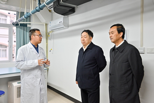本网讯 (通讯员 李柯霖) 10月28日,荆楚理工学院党委书记王学民、党委副书记武建斌、纪委书记高福斌等一行来武陵山中药材检验检测中心考察、交流。学校党委书记向前进,党委副书记、副校长汪兴平,纪委书记张宏磊,中心副主任杨春海陪同考察。