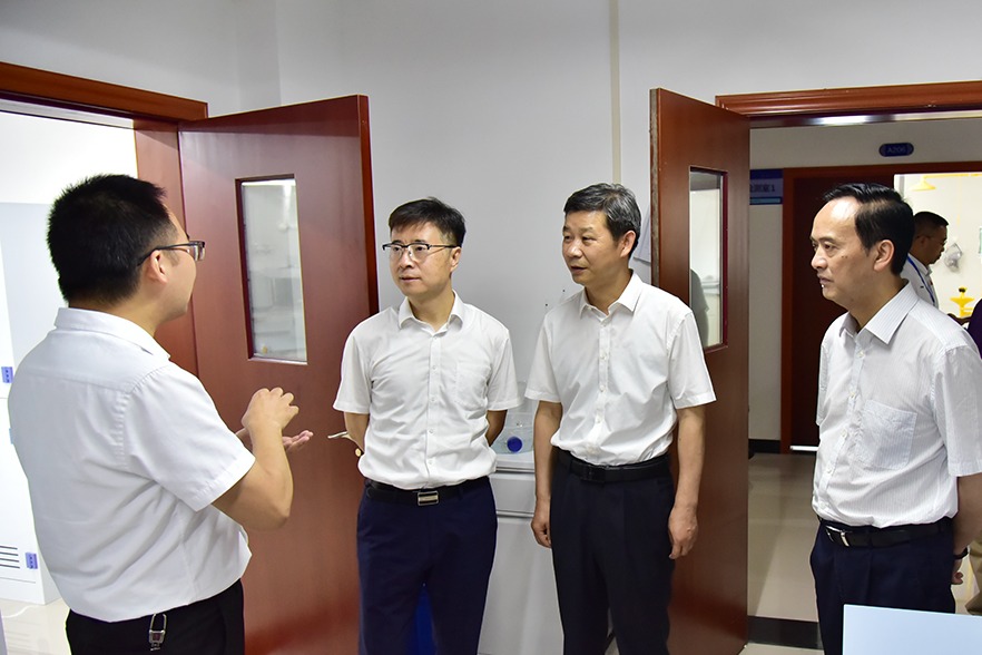 7月7日,农业农村部科技发展中心党委书记、副主任李岩,陕西安康市委常委、副市长陈晖到武陵山中药材检验检测中心调研、考察,学校党委书记向前进、党委常委刘志军接待了李岩一行。