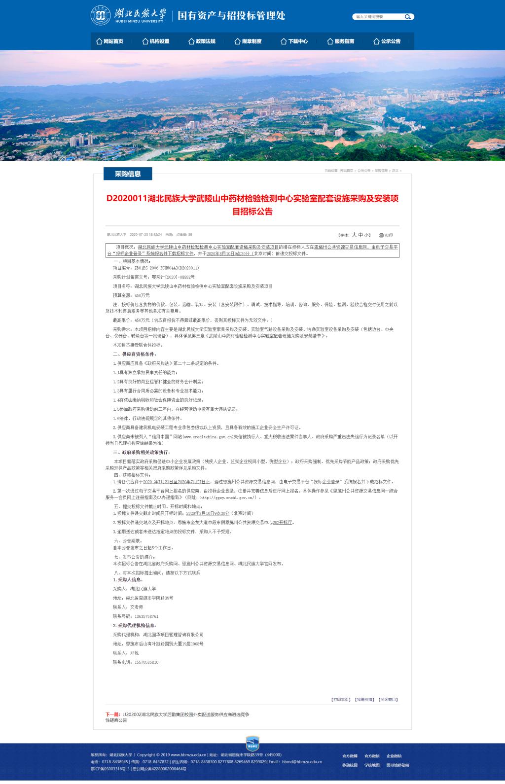 Beat365唯一官方网站武陵山中药材检验检测中心实验室配套设施采购及安装项目招标公告