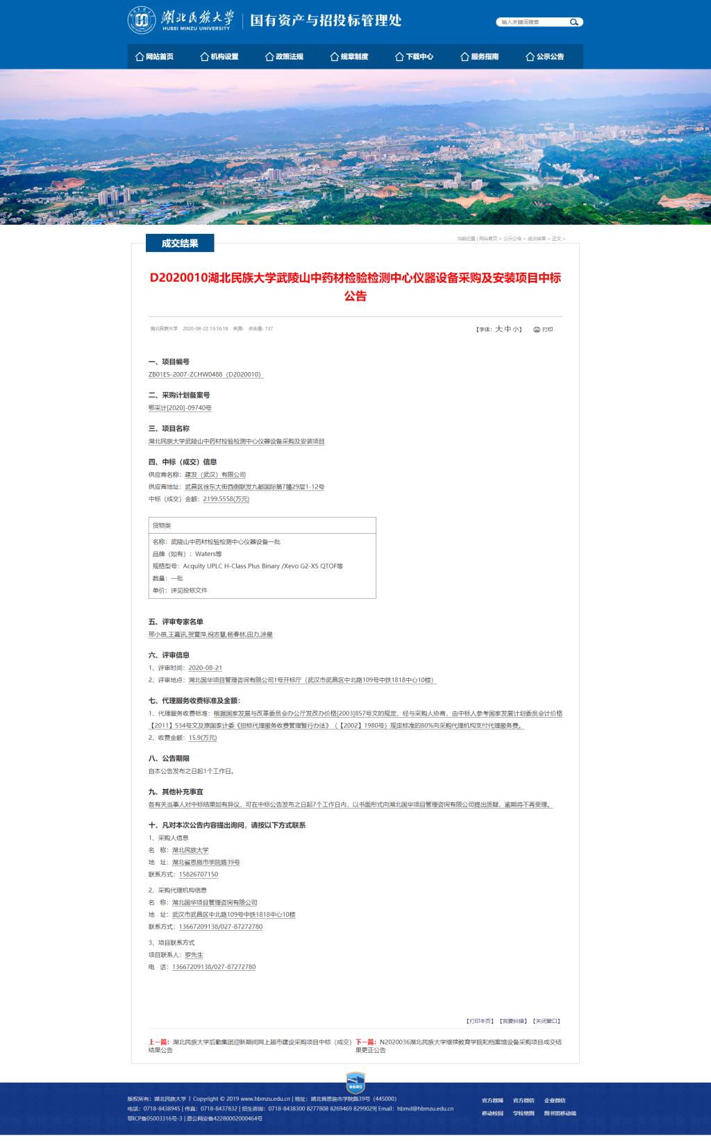 Beat365唯一官方网站武陵山中药材检验检测中心仪器设备采购及安装项目中标公告
